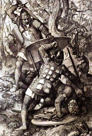 Herzog Ernst von Schwaben und Graf Werner von Kyburg fallen aus Freundschaft füreinander unter den Schwertern der Kaiserlichen.
