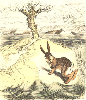 Der Hase und der Bauer Von Wasserflut umrauscht, ein Has’ |