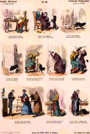 Denn Vorgänger, das waren die Bilderbogen, die ihrerseits wieder auf den Einblattdruck und das fliegende Blatt seit der Erfindung des Buchdrucks zurückgehen. Ihr mannigfacher Zweck war der gleiche wie der der Massenmedien unsrer Zeit: Vermittlung von neuesten Nachrichten aus aller Welt, Kriegsberichte und Moritaten, politische Waffe, Karikatur aller menschlichen Torheit, aber auch ernste Bildung, harmlose Unterhaltung, Anschauung der Welt mit oder ohne »Weltanschauung« und nicht zuletzt, Weiterlesen