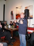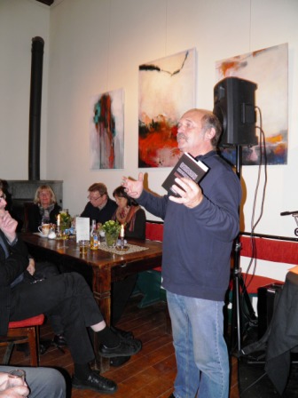 Am Ort des Geschehens traf ich auf einen Autor, der sichtlich zufrieden, aber auch etwas angespannt auf mich wirkte. Zum einen füllte sich das Turmcafé mit Besuchern bis auf den letzten Platz, zum anderen waren darunter 3 ehemalige Lehrer des Autors, mit deren Anwesenheit er nicht gerechnet hatte.