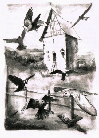 Vater war selbst viele Jahre Falkner, aber als er seinen Lieblingsfalken Pfeil an einen Walduhu verlor, der den schönen Falken bis in eine Scheune verfolgte und dort schlug, brach es Vater fast das Herz und er hängte die Falknerei an den Nagel.