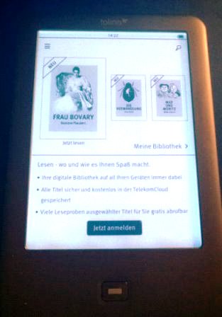 Der Touchscreen selbst reagiert sehr zügig auf Eingaben, die Einstellungen sind nahezu selbsterklärend und rasch vorgenommen. Hat man noch kein Nutzerkonto beim jeweiligen Shop, kann man dieses über den tolino einrichten.