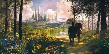 Wie im Original aus dem Jahr 1939 wird aus dem anfänglich schwarz-weißen Szenario eine bunte faszinierende Welt, welche an das Land der Süßigkeiten in Charlie und die Schokoladenfabrik erinnert. Eben zu Oz als ein magischer und wundersamer Ort.