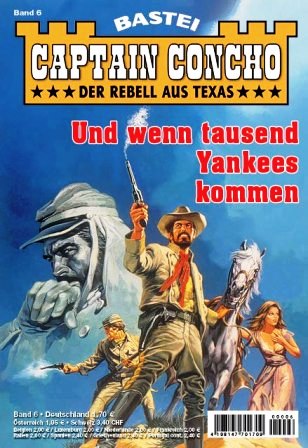 Ausgepumpt erreichte Concho seinen Braunen und warf sich wie ein angreifender Grizzly auf dessen Rücken. »Yankees!«, rief er, während er den Braunen vorwärtspeitschte und den Säbel aus der Scheide riss.