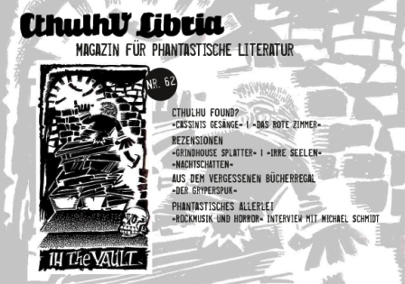 Cthulhu Libria ist ein kleines Magazin über phantastische Literatur, in welches sehr viel Herzblut investiert wird. Was treibt einen jungen Mann wie den Herausgeber Eric Hantsch dazu, riesige Listen von Neuveröffentlichungen innerhalb der Phantastikgenres zu erstellen, von denen viele jenseits des Mainstreams liegen? Es ist seine unumstrittene Leidenschaft für neue Bücher und vor allem die Angst davor, ein echtes Meisterwerk, welches nicht genug beworben wird, zu verpassen. Aus diesem Grund hat er 2008 mit der Auflistung aller neuen Veröffentlichungen auf diesem Gebiet begonnen. Der Künstler Johann Peterka – er war Illustrator für große Verlage wie zum Beispiel Bastei – konnte dazu bewegt werden, seine phantastischen Tuschezeichnungen als Titelbilder für die E-Zine-Ausgaben und kurze Graphic Novels beizusteuern. Inzwischen gibt es ein ganzes Team, welches Buchrezensionen und Artikel schreibt. Auszüge aus Büchern mit Genehmigung der jeweiligen Herausgeber und Interviews bilden neben vielen anderen Schätzen einen Teil des Inhalts. Das Team richtet nach wie vor seinen Fokus auf Titel kleiner Verlage, früher meist Horror, inzwischen auch auf alle Werke der Phantastik. Um noch mehr Leser auf das E-Zine Cthulhu Libria aufmerksam zu machen, bieten wir die Ausgaben kostenlos als Download an.