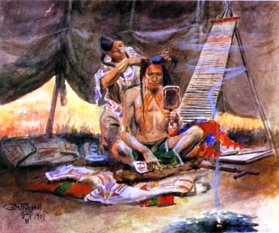 Charles Marion Russell wurde am 19. März 1864 in St. Louis, Missouri geboren. Schon als Kind zeigte sich seine künstlerische Begabung, ein Erbe seiner Mutter. Er zeichnete und formte Lehmfiguren. Trotz seines Talents war er ein schlechter Schüler und wurde deswegen von seinen Eltern auf eine Militärschule geschickt. Mangels Disziplin wurde er von der Schule verwiesen. Sein Wunsch war es, im Wilden Westen als Cowboy zu arbeiten. 1880 ging der 16-Jährige mit einem Freund der Familie nach Montana, schlug sich mit Gelegenheitsarbeiten durch, bis er eine Stelle als Cowboy fand. Seine Freizeit nutzte er zum Malen und Zeichnen. Bald war er als amüsanter Geschichtenerzähler und talentierter Maler bekannt. Eines seiner bekanntesten Gemälde, das während dieser Zeit entstand, ist Waiting for a Chinook. Er war beeindruckt von den amerikanischen Ureinwohnern und befasste sich mit ihrer Kultur. Für ihn waren sie Edelmänner der Prärie.