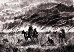 Mit diesen Worten bog er immer neue Halme nieder, welche, im brennenden Zustand sich wieder aufrichtend, das Feuer schnell verbreiteten. Kaum eine Minute war nach unserer Ankunft verstrichen, als wir, die Pferde an der Leine führend, dem neuen abwärts treibenden Brand folgten und unsere Füße auf aschigen Boden und versenkte Stoppeln setzten. Wir waren gerettet, doch wo war Hug-ha?