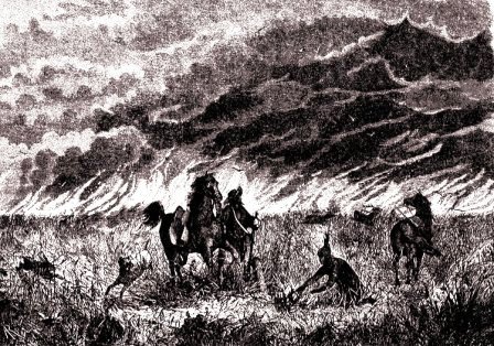 Höhenrauch nennen die Leute diese sich fast täglich wiederholende Erscheinung und schreiben diese im Allgemeinen den Präriebränden zu, welche besonders im Herbst über weite dicht begraste Flächen hineilen. Gleichgültig schaut der Stadt- und Landbewohner zu dem Höhenrauch empor, spricht vermutlich auch vom anhaltend guten Wetter, auf welches dieser hindeuten soll. Der Szenerie aber, von welcher der Westwind und der Rauch der Höhen erzählen könnten, und die in ihren Eindrücken auf das Gemüt zugleich furchtbar und erhaben, schreckenerregend und bezaubernd sind, gedenkt nur derjenige, welcher das entfesselte Element in seiner ganzen gewaltigen Pracht kennenlernte und, von den wilden Flammen verfolgt, den entsetzlichen Wettlauf um das Leben wagte.