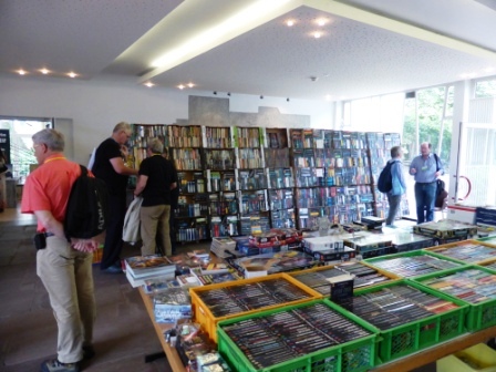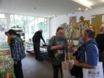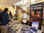 Neben meinem Verlag fanden sich auch andere wie Atlantis Verlag, Begedia Verlag etc. Das galt auch für Autoren und andere Künstler, etwa Ju Honisch und Kai Meyer, um Autoren zu nennen, AP international, um eine Malerin zu nennen, Jürgen Lautner mit einem Modellbaustand zu Steampunk, sehr stimmungsvoll und als Blickfang das Amt für Aetherangelegenheiten. Dort habe ich einen Pass erwerben können. Bei der Einstellung als Beamter für das Amt für Aetherangelegenheiten habe ich nicht ganz die Qualifikation. Also bleibe ich weiter Verleger und Herausgeber. Als solcher tauscht man sich natürlich gern mit den anderen Verlegerkollegen aus, die sich aber auch selbst immer wieder als Sammler herausstellen. Klar, dass wir immer mal wieder Bücher tauschen. Etwa mit Joachim Körber von der Edition Phantasia oder Jörg Kaegelmann vom Blitz-Verlag. Auf diese Weise kommt man immer mal wieder zu Büchern, die man nicht kauft, weil man (in diesem Fall ich) keinen Platz mehr hat. Also muss man ein paar Bücher mehr verkaufen als sonst. Welche Bücher das sind, werdet ihr im phantastischen Bücherbrief lesen können, wenn ich sie gelesen habe. Und weil ich gerade vom Sammeln spreche. Auch Sammler kamen auf ihre Kosten und die nicht einmal hoch. Reinhard Rauscher war mit einer großen Menge gebrauchter Bücher erschienen und bot diese dem interessierten Publikum an. So fanden wieder viele Bücher eine neue Heimat, Sammler die fehlenden Stücke oder Leser einfach etwas, was sie interessiert und im normalen Buchhandel nicht (mehr) erhalten.