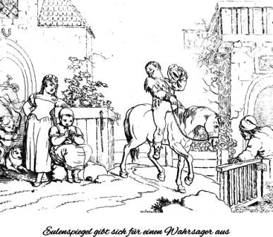 Eulenspiegel gibt sich für einen Wahrsager aus.
