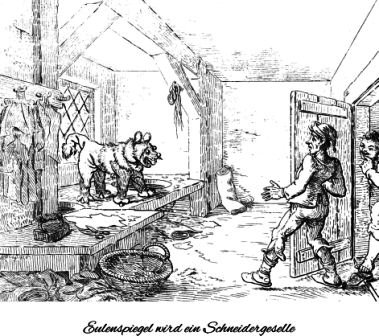 u einer anderen Zeit kam Eulenspiegel nach Berlin, und da er nicht wusste, auf welche Art er sich hier am besten ernähren könnte, so gab er sich für einen Schneidergesellen aus und nahm bei einem Meister Arbeit.