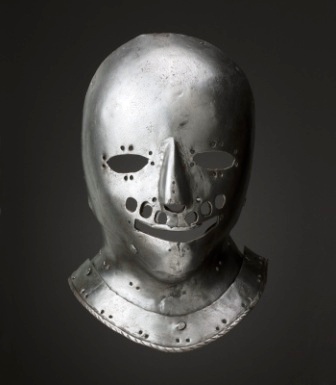 Gleich hinter dem Eingang des Museums, vorbei an Schwertern und Rüstungen, gibt es eine Vitrine, in der eines der letzten Zeugnisse von Stier zu sehen ist. Eine eiserne Maske mit Öffnungen für Augen, Nase und Mund. Man sieht ihr an, dass sie von einem Dorfschmied gefertigt wurde, sie ist ziemlich grob gearbeitet.