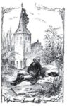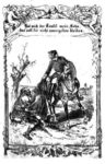 Des Reitens müde, stieg ich endlich ab und band mein Pferd an eine Art von spitzem Baumstaken, der über dem Schnee hervorragte. Zur Sicherheit nahm ich meine Pistolen unter den Arm, legte mich nicht weit davon in den Schnee nieder und tat ein so gesundes Schläfchen, dass mir die Augen nicht eher wieder aufgingen, als bis es heller lichter Tag war. Wie groß war aber mein Erstaunen, als ich fand, dass ich mitten in einem Dorf auf dem Kirchhof lag! Mein Pferd war anfänglich nirgends zu sehen, doch hörte ich es bald darauf irgendwo über mir wiehern. Als ich nun empor sah, so wurde ich gewahr, dass es an den Wetterhahn des Kirchturms gebunden war und von da herunter hing. Nun wusste ich sogleich, wie ich dran war. Das Dorf war nämlich die Nacht über ganz zugeschneit gewesen. Das Wetter war auf einmal umgeschlagen. Ich war im Schlaf nach und nach, so wie der Schnee zusammengeschmolzen war, ganz sanft herabgesunken. Was ich in der Dunkelheit für den Stummeleines Bäumchens, der über dem Schnee hervorragte, gehalten und daran mein Pferd gebunden hatte, das war das Kreuz oder der Wetterhahn des Kirchturms gewesen.