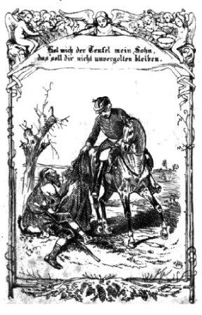 Der arme Teufel dauerte mich von ganzer Seele. Ob mir gleich selbst das Herz im Leibe fror, so warf ich dennoch meinen Reisemantel über ihn her. Plötzlich erscholl eine Stimme vom Himmel, die dieses Liebeswerk ganz ausnehmend herausstrich, und mir zurief: