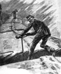 Er war nämlich ein Bremser und die primitiven Handbremsen, die er zu bedienen hatte, waren menschenmordende Vorrichtungen, die nur mittels Handrädern angezogen werden konnten, die sich auf dem Wagendach befanden. Daher mussten die Bremser, meistens zwei pro Zug, bei jedem Wetter auf dem Dach sitzen.