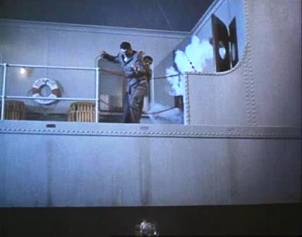 Doug gelangt auf die TITANIC und versucht, seinen Freund zu befreien. Gemeinsam bemächtigen sich die beiden Wissenschaftler des Funkraums und funken um Hilfe, bevor die Katastrophe eintreten kann. Doch die Geschichte lässt sich nicht so einfach ändern, und der Kapitän und seine Männer stürmen den Raum und annullieren die S.O.S.-Nachrichten. Erst später, als das Schiff einen Eisberg rammt, beginnt der Kapitän, der unglaublichen Geschichte der beiden Glauben zu schenken. Doch leider ist es zu spät, und die RMS TITANIC versinkt in den Fluten.