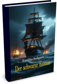 Der Schwarze Korsar erschrak bei diesen Worten, dann blieb er einen Augenblick stehen, schaute die beiden Freibeuter mit Augen an, die schienen, Flammen zu werfen.