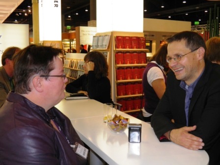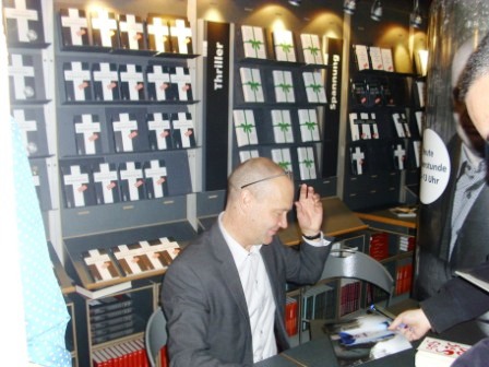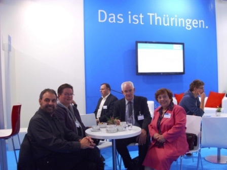 Zwischen den Terminen blieb uns immer Zeit, um uns auf dem Messegelände umzusehen und Leute zu treffen. So beispielsweise Michael Kirchschlager, der am Gemeinschaftsstand der Thüringer Verlage mit seinen Büchern aus dem Verlag Kirchschlager vertreten war. Da wir derzeit eng mit Michael zusammenarbeiten, bot uns die Messe einen schönen Rahmen, um letzte Absprachen zu treffen und schon bis in das Jahr 2014 zu planen.