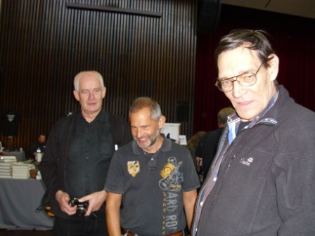 So nutzten wir die Gelegenheit, dass Autor, Illustrator und Layouter von »Schock«, dem neuen Geniestreich von Markus K. Korb, anwesend waren, und ließen uns die Entstehung des Buches genau erläutern. Denn »Schock« ist nicht einfach nur ein Kurzgeschichtenband, sondern man kann es in der Horrorszene durchaus als Gesamtkunstwerk bezeichnen, welches ohne die Illustrationen von Christian Krank und dem Layout von Mark Freier eben »nur« ein Buch geblieben wäre. Markus’ Vorliebe für alte Gruselcomics diente als Vorlage, um das Buch entstehen zu lassen. Optisch ist »Schock« auch als Paperbackausgabe schon mal ein Leckerbissen, ob die Geschichten nun halten, was die Aufmachung verspricht, werden wir demnächst in einer ausführlichen Rezension darlegen. Ich bin jedenfalls schon sehr gespannt darauf.